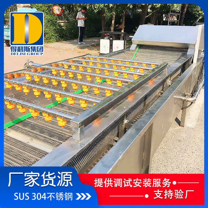 清洗機(jī)采用氣泡清洗,分離被清洗物表面附著物,模擬人工清洗基本動(dòng)作并減少了人工清洗中的碰、磕、劃傷等現(xiàn)象,提高了工作效率,變?nèi)斯ぷ鳂I(yè)為機(jī)械化加工。適合于各種新鮮蔬菜、鹽漬菜、菌類、海產(chǎn)品。根據(jù)所清洗物料比重的不同,設(shè)計(jì)了兩種型號(hào):全網(wǎng)帶型、半網(wǎng)帶型。半網(wǎng)帶型適合于物料比重小于或等于水的物料,全網(wǎng)帶型適合比重大于水或怕碰傷的物料。
