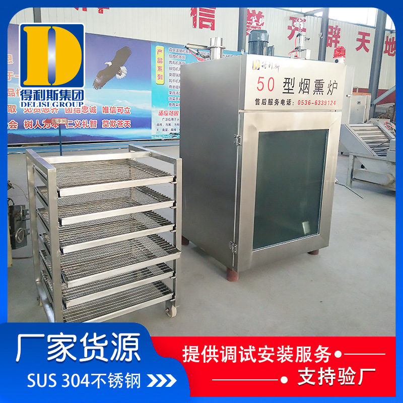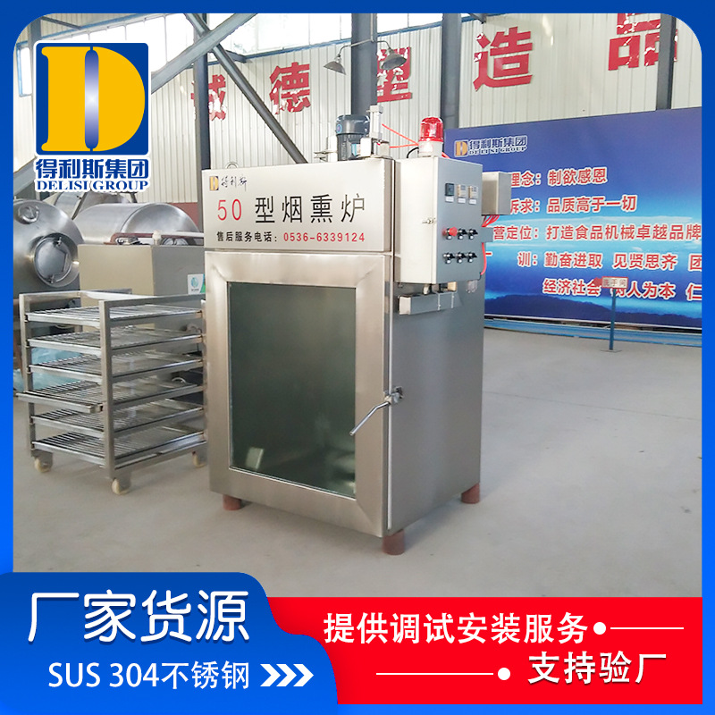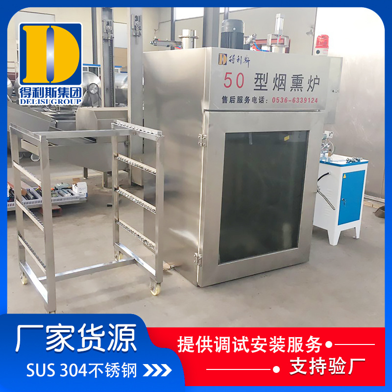 煙熏爐具有蒸煮、干燥、煙熏、清洗及安全保護等功能,有小型煙熏爐,全自動煙熏爐,半自動煙熏爐等多個型號以及內置發煙和外置發煙兩種發煙方式。全自動煙熏爐是由電腦自動化控制 7寸維綸屏畫面,在一個畫面上同時顯示各種參數,以便監控運行狀態;全自動煙熏爐可實現遠程控制;打印配方、溫度、濕度曲線;全自動煙熏爐可儲存至少99個工藝配方。風循環系統 使產品在烘烤、蒸煮、干燥、煙熏等過程中的溫度、濕度的一致性,從而保證了產品的著色均勻,色澤美觀。