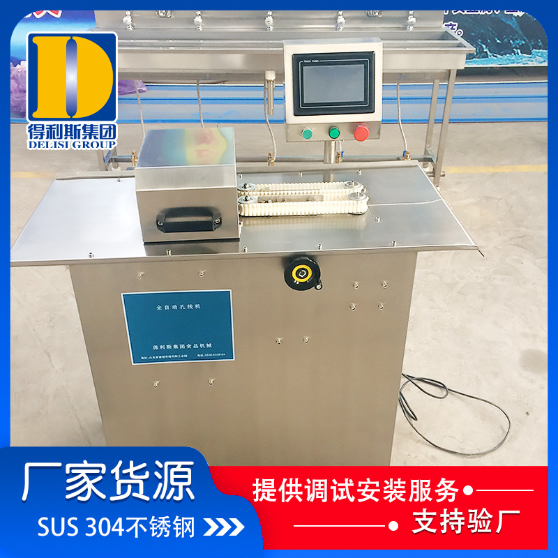 1、SUS304不銹鋼制造,體積小,效率高,易操作??刂葡到y采用觸摸屏和伺服控制系統,具有手動和自動連續兩種生產模式,在自動連續模式下生產效率更高,省時、省力。直觀的觸摸屏控制畫面,能夠設置生產的速度,扎線的圈數,拖腸的時間等參數,還能對生產進行產量統計